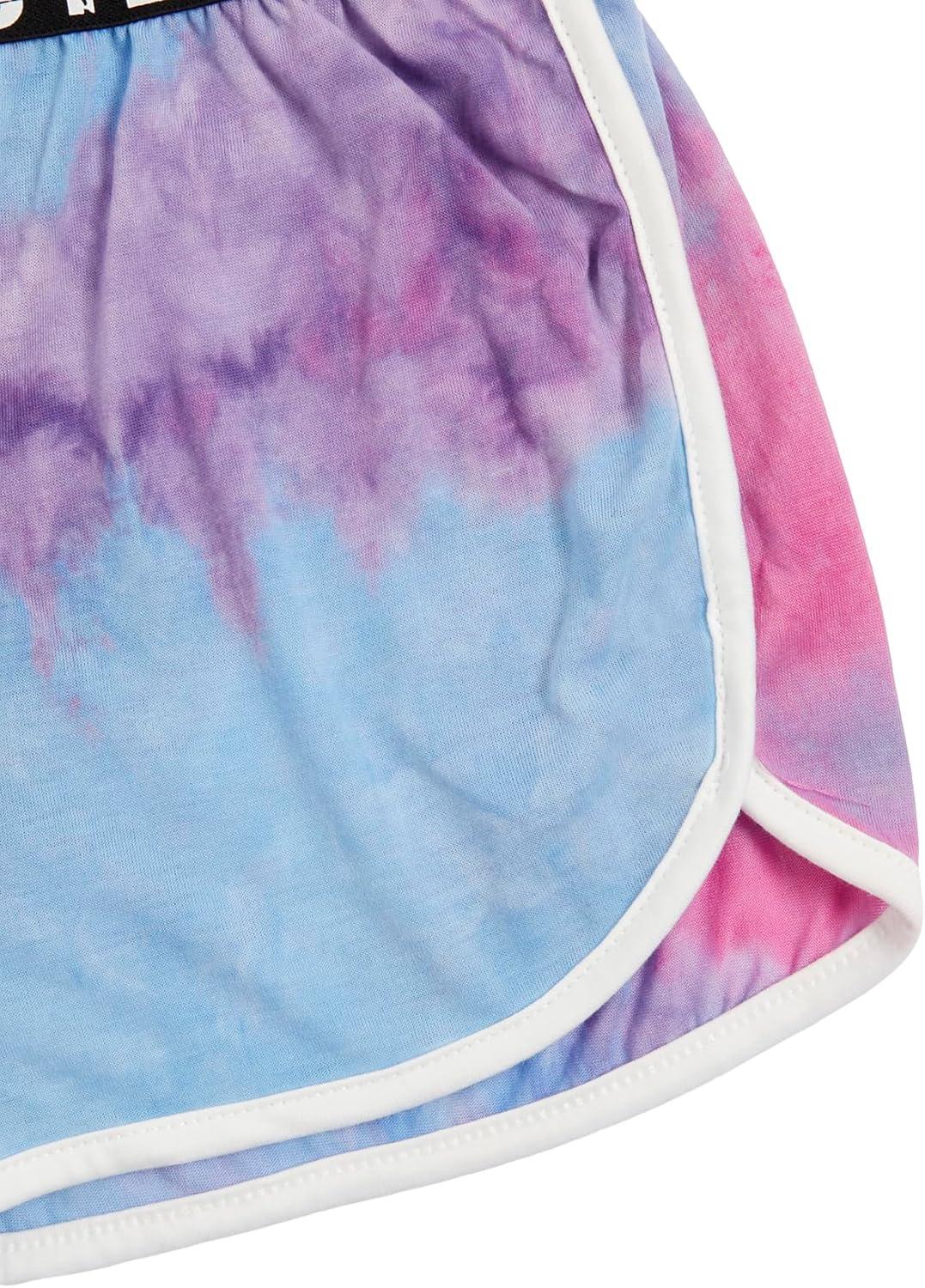 Milumia Girl's 2PCS Outfit Tie Dye Letter Halter Cami Crop Top and Dolphin Shorts Set(Blue and Pink)