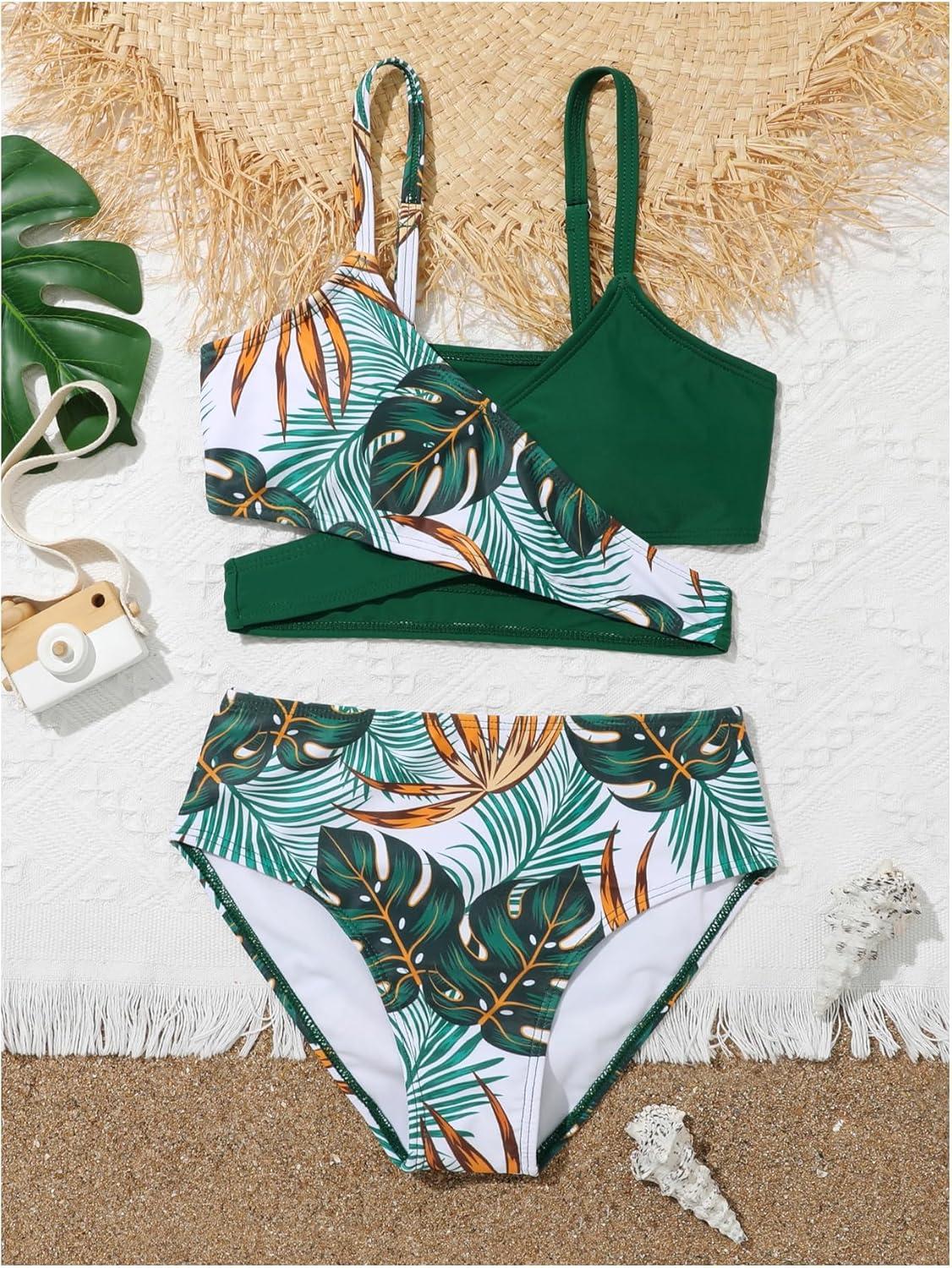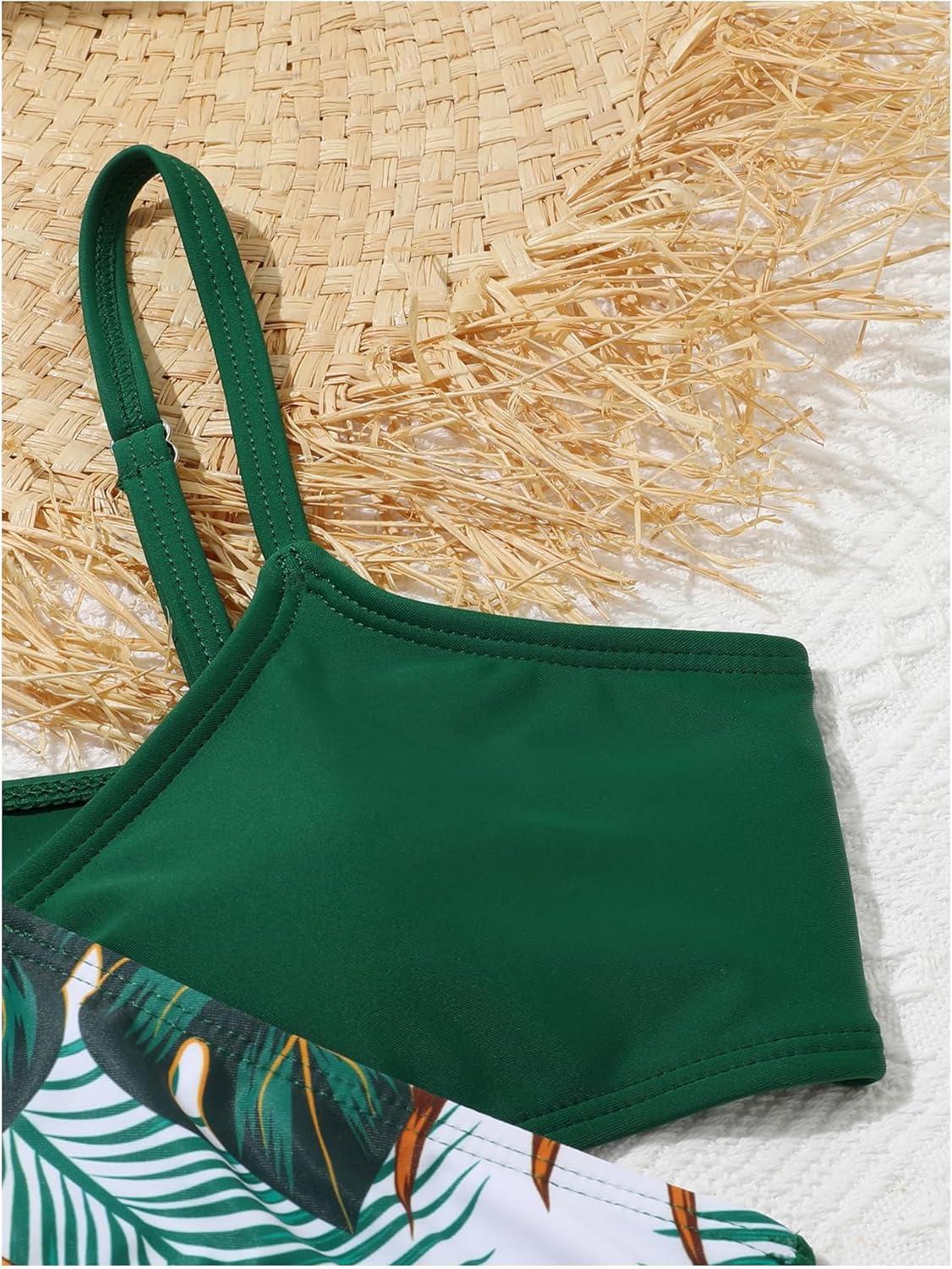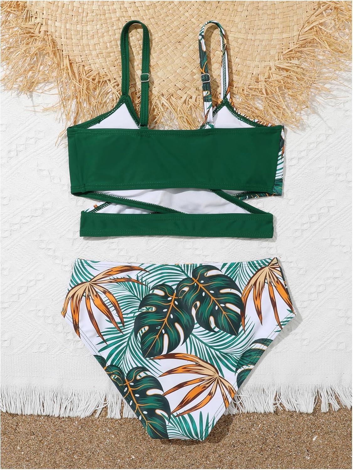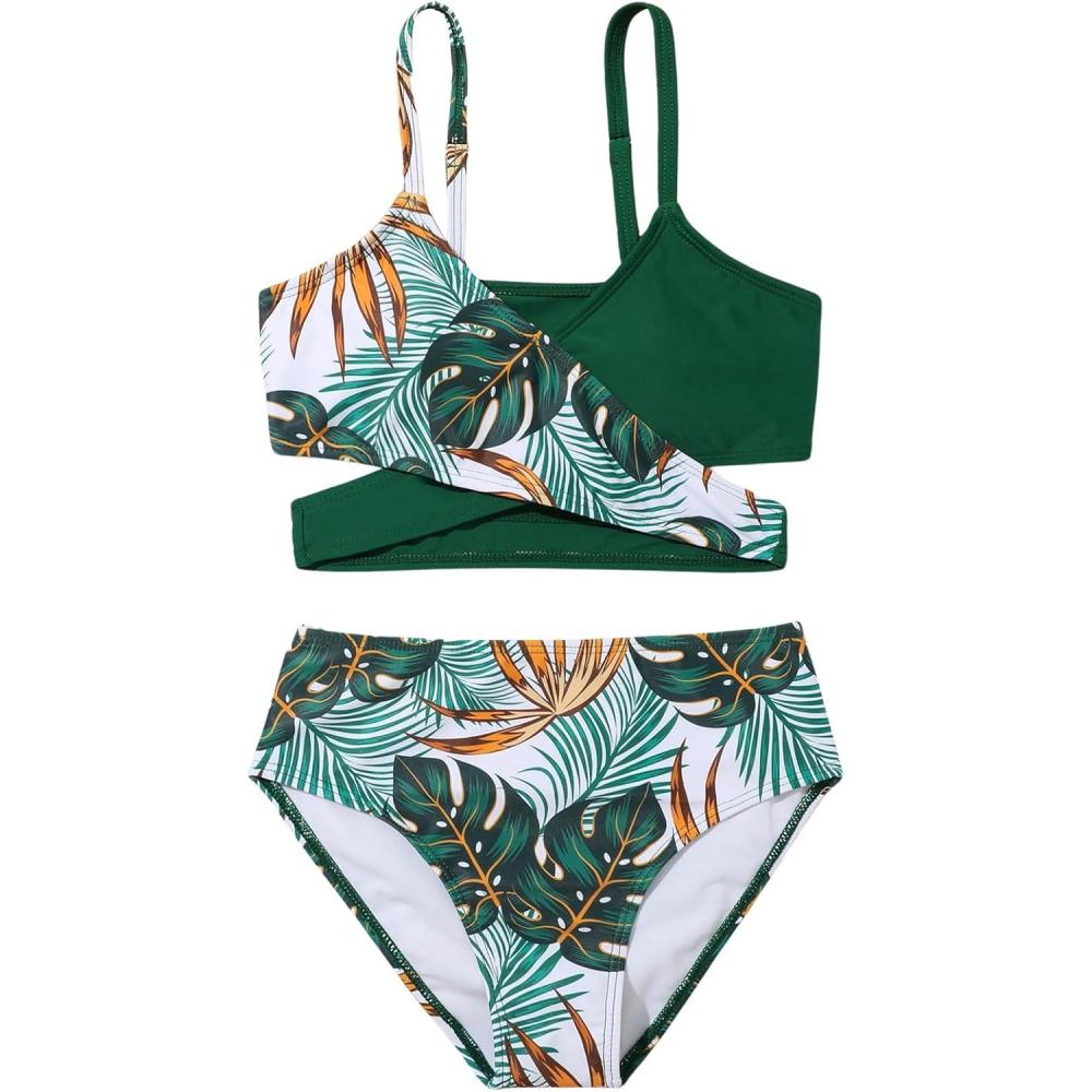 Milumia Girl’s Cute 2 Piece Floral Criss Cross Bathing Suit Wrap Bikini Swimsuit(Multi Dark Green)