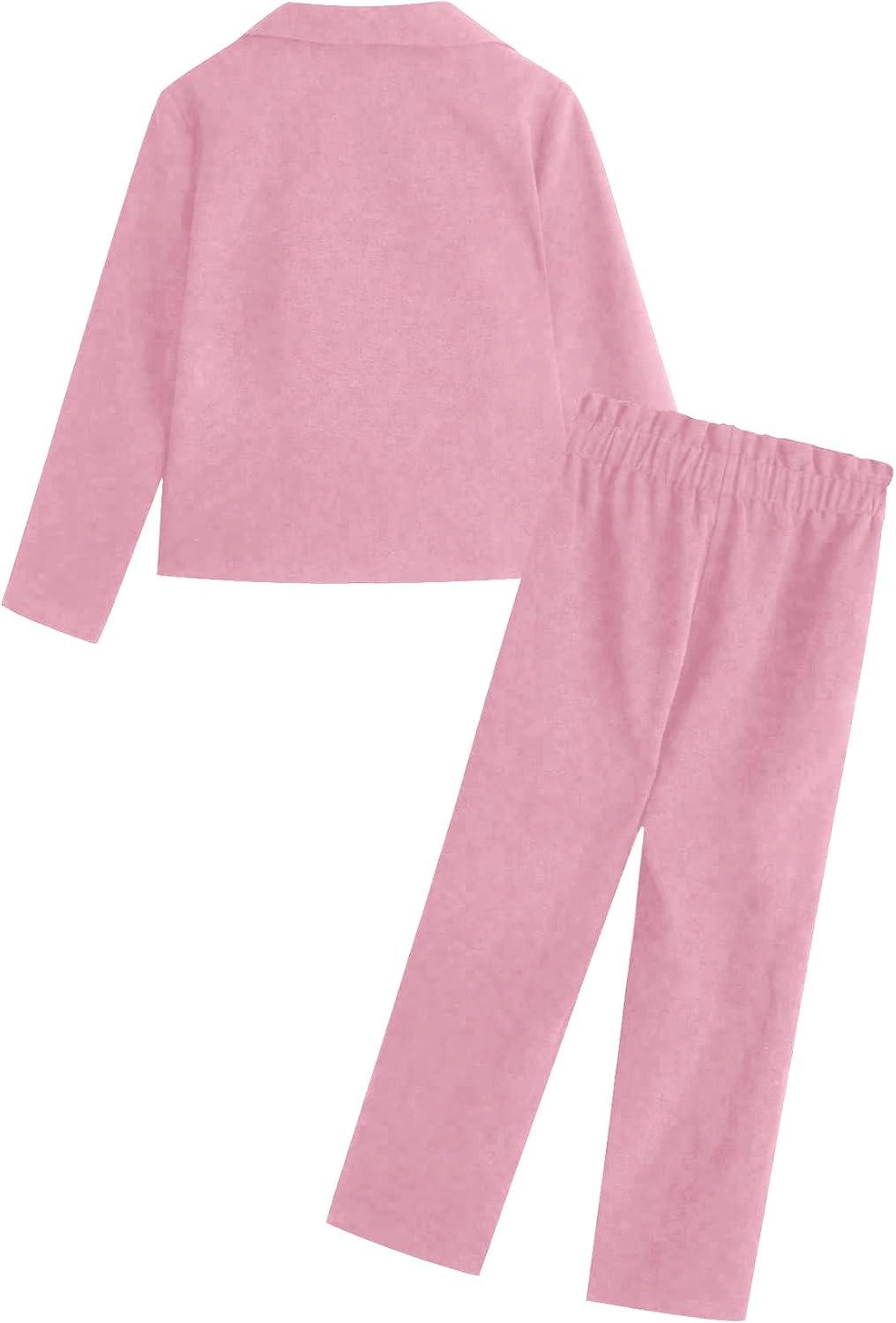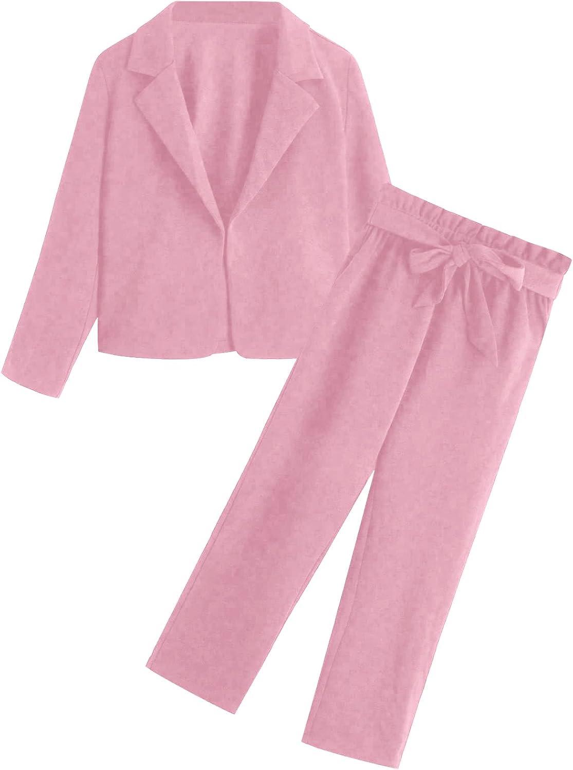 Milumia Girl’s Two Piece Outfit Solid Open Front Blazer and Pants Set(Pink)