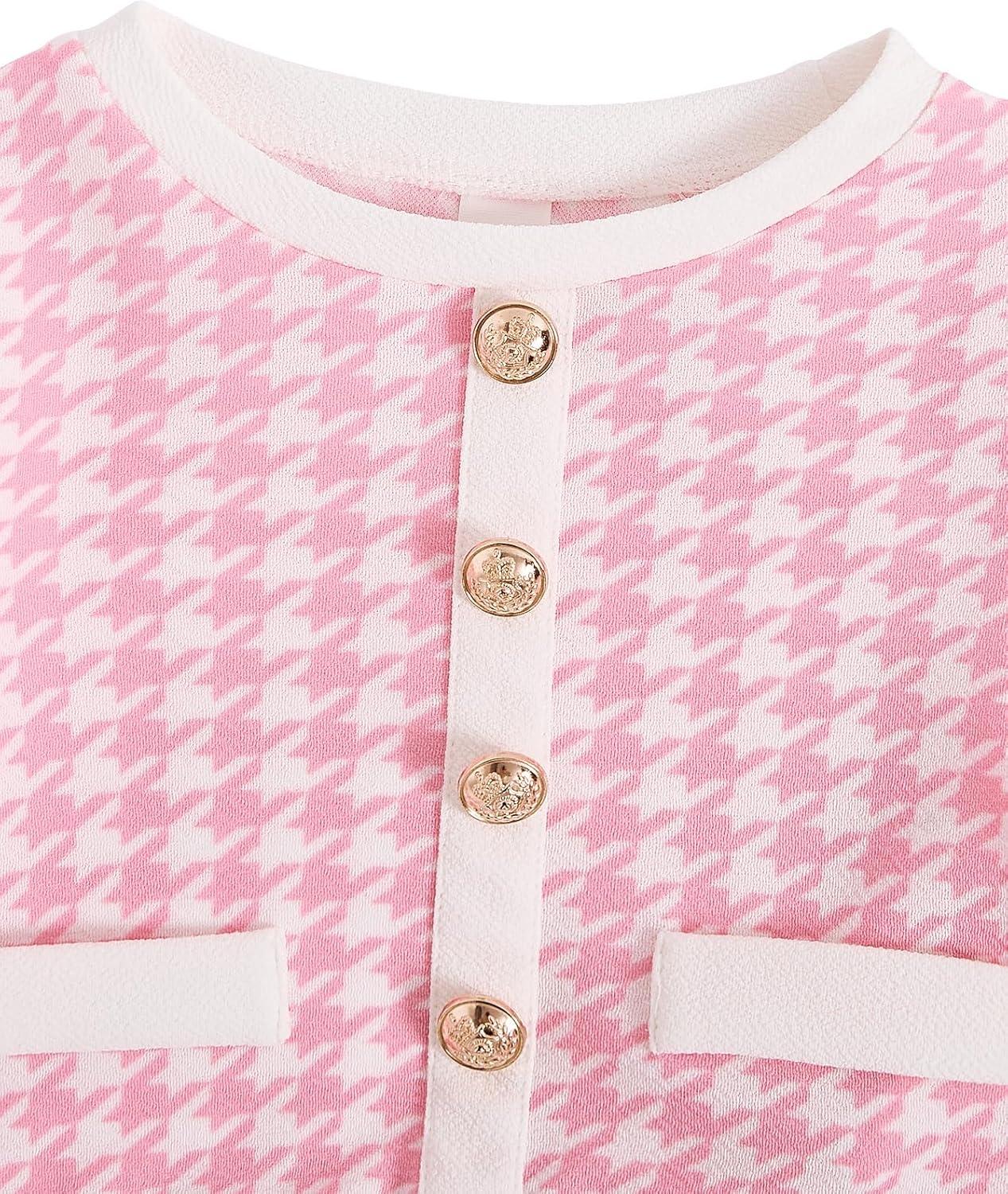 Milumia Girl’s Two Piece Outfits Houndstooth Button Decor Crop Blazer Jacket and Skirt Sets(Pink)