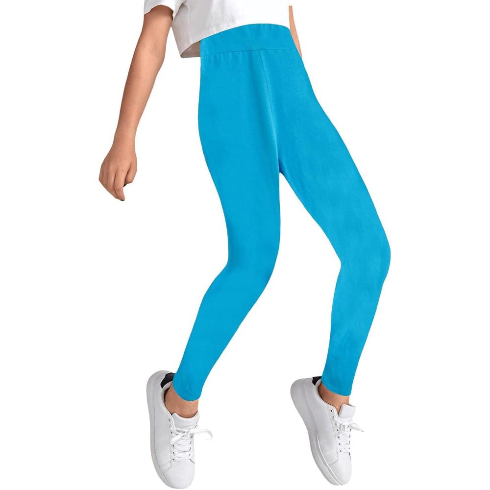 Milumia Girl's Wideband Waist Leggings High Waisted Tights Workout Yoga Pants(Blue)