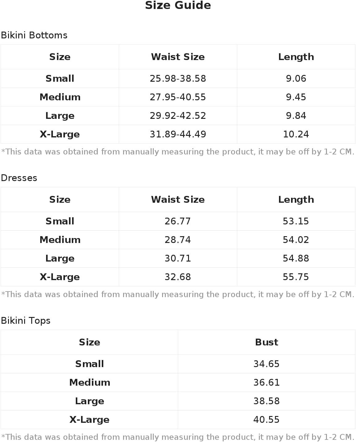 S:Bust:34.6IN,Length:9.1IN,Waist Size:26.0-38.6IN,Length:53.1IN,Waist Size:26.8IN